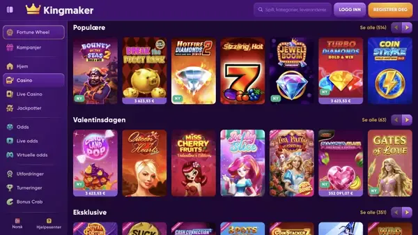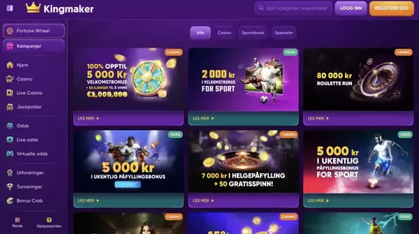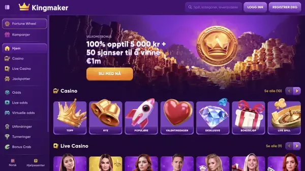 Denne siden passer for casual spillere som vil ha raske innskudd i NOK og klare omsetningskrav, og den passer ogsÄ erfarne brukere som liker mange leverandÞrer og kryptovalg. Hvis du ser etter Kingmaker casino Norge-tilgang med et bredt utvalg, finner du spilleautomater, live dealere, bordspill, jackpoter og instant-spill i én lobby. Mange spillere sier at de foretrekker mÄten Kingmaker holder navigasjonen enkel pÄ, med filtre for leverandÞrer og spilltyper, samt kampanjer som er lette Ä sammenligne.